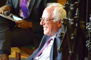 Vermont Senator and presidential candidate Bernie Sanders returned to the City from his meeting with the Pope at the Vatican and hit the ground running, traveling to the First Unitarian Congregational Society in Brooklyn Heights for a faith and social justice roundtable.