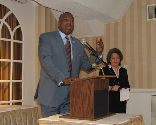 Republican mayoral hopefuls Bo Dietl and Michel Faulkner made their pitch yesterday on why they deserve Brooklyn Conservative Party votes at yesterday’s Kings County Conservative Party annual brunch held at the Bay Ridge Manor, 476, 76th Street in Bay Ridge yesterday.