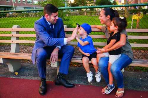 Saperstein: I have a young child at home and am a teacher full-time. So right after work, I’m at the campaign office, making phone calls and knocking on doors. I think being an educator has made me realize the impact we have on children. Looking at my parents and grandparents, seeing the hard work and sacrifice that they made, I see it’s our duty as the next generation to protect them and make sure they can live out their golden years and make sure the city won’t turn that upside down. My plans are resourceful and practical. You can just look outside and feel it in your bones that things are getting back to days before Giuliani and Bloomberg. This councilman may not realize it, but he’s part of the problem. We’re expecting great things in November. People value common sense, no matter their party, and I’m a guy who will shake things up and not follow the status quo. So the wild card is will people come out and vote? We’re excited and highly optimistic.