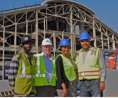 NYSAMC members with Public Advocate Letitia James on a construction site. Contributed photo