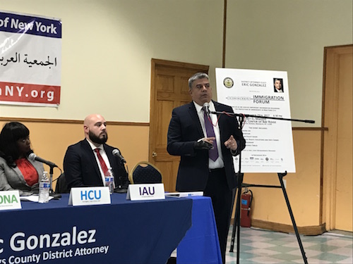 Brooklyn District Attorney Eric Gonzalez, held an immigration forum at Bet El-Maqdis Islamic Center of Bay Ridge, 6206 6th Avenue last night, where he responded to Tuesday’s U.S. Immigration and Customs Enforcement (ICE) court intervention.