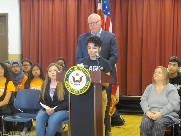 U.S. Rep. and House Democratic Caucus Chairman Joe Crowley (D-Sunnyside, Astoria, College Point, East Elmhurst, Jackson Heights, Corona, Woodside, The Bronx) came to the Renaissance Charter School in Jackson Heights today to join students in advocating for Congressional action on gun violence one month after the fatal shooting in Parkland, Florida.