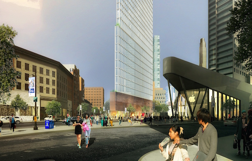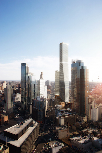 The controversial project includes a one 38-story, 560-foot skyscraper and a 74-story, 986-foot skyscraper that would be home to two public schools, 900 units of affordable (200 of which would be permanently affordable) and market-rate housing, a cultural facility, commercial office and retail space.