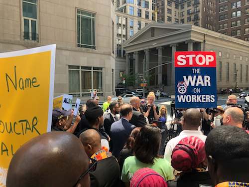 The death of a coworker inspired workers and lawmakers to rally yesterday in front of 100 Church Street in Lower Manhattan for major changes to come in the private sector of waste management in New York City.