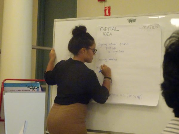 The city is currently in the first stage of the budgeting cycle, during which ideas are brainstormed. After explaining what projects are and aren’t eligible for participatory budgeting, Gutierrez encouraged the audience to throw out as many ideas as they could.