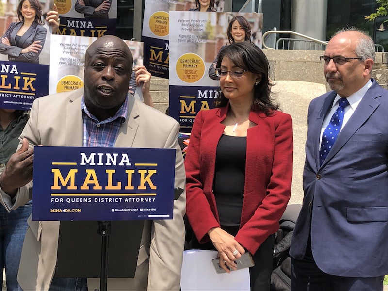 On the heels of the Central Park Five four-part Netflix series When They See Us (2019), Mina Malik, the former executive director the Civilian Complaint Review Board, gathered near the steps of the Queens County Criminal Court in Kew Gardens on Wednesday with her supporters to unveil her plans to implement a Conviction Review Unit for the Queens District Attorney Office that she is running for on June 25.