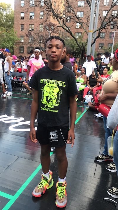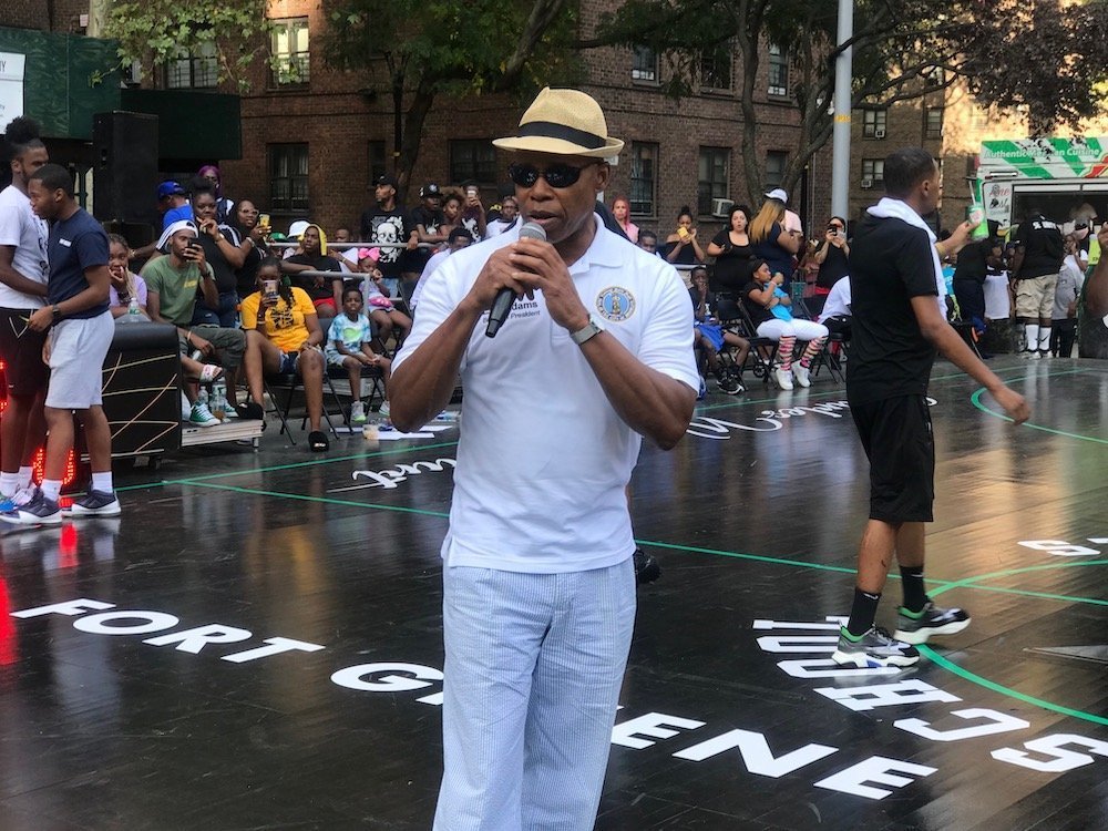 Gibson, a power forward, who recently signed with the New York Knicks sponsored the event, which had parents and kids gathered on the sidelines to watch a friendly game of basketball with residents from the Fort Greene housing projects.