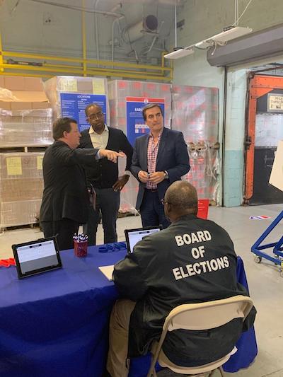 Myrie, along with State Senate Deputy Leader Michael Gianaris (D-Queens) and the city’s Board of Elections (BOE) Executive Director Michael Ryan toured a Brooklyn Voting Machine Facility, 5112 2nd Avenue in Sunset Park this morning to help promote early voting, which begins this Saturday.