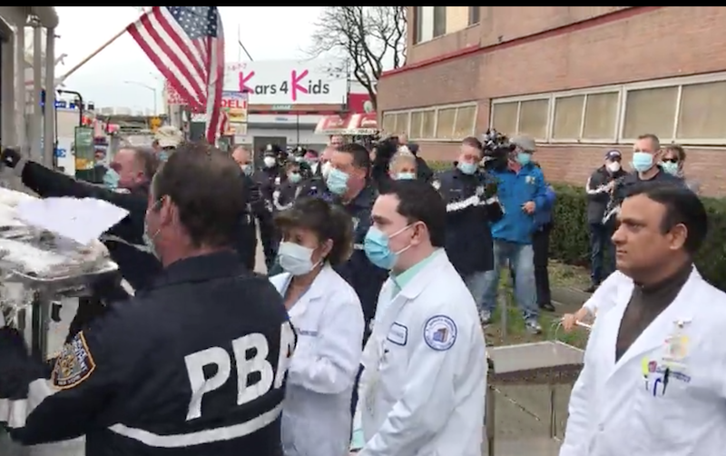 “We are all family on the front lines. Cops, nurses, doctors and hospital staff have a long-standing bond – we know each other and work together 365 days a year. That bond has only grown stronger over the past several weeks,” said PBA President Patrick J. Lynch said.