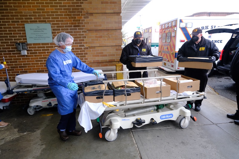“Our medical staff is working all day, every day, in extremely challenging conditions,” said Dr. Lawrence Haines, a senior emergency room physician at Maimonides Hospital. “Many days, our doctors and nurses barely have a minute to think about feeding ourselves because the demands on us are so great. Gestures such as a hot, delicious meal in the middle of a shift go a long way towards providing needed sustenance and a psychological boost to know that so many fellow New Yorkers are thinking of us. Thank you to the Friars Club, LB Spumoni Gardens and the Emergency Task Force of the Diocese of Brooklyn for making our day a little brighter.”
