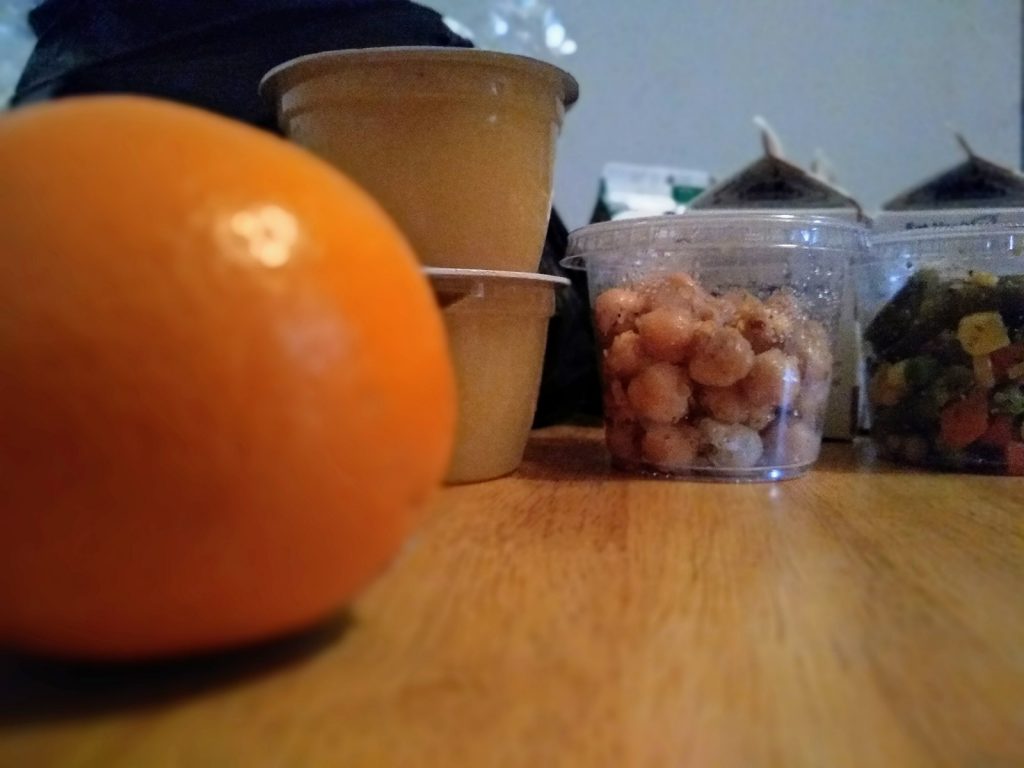 Free food’s a powerful thing. They give him a clear-white plastic bag, the kind that appears weightless when you wrap it around a gift basket. Inside, individually wrapped in the same plastic, are little milk boxes, applesauce, cheese sandwiches, oranges, juice and some form of chickpeas or veggies.