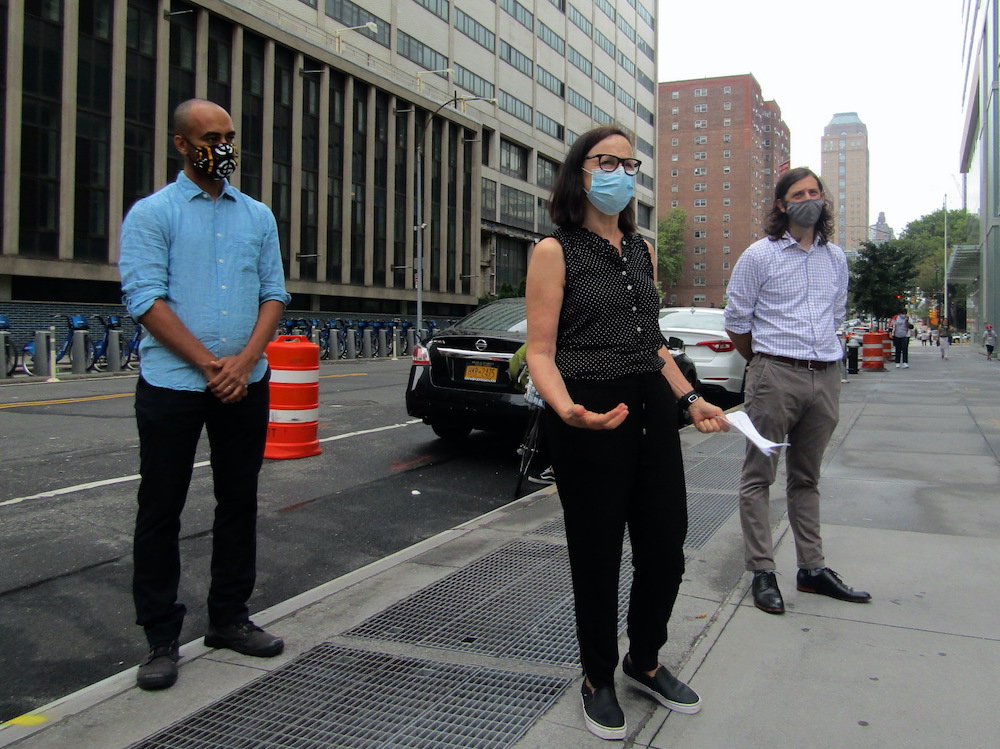 The lawmakers stood in cooperation with Deputy Director Marco Conner DiAquoi of Transportation Alternatives Brooklyn and Regina Myer of the Downtown Brooklyn Partnership on the corner of Jay and Johnson Streets in downtown Brooklyn specifically to protest local authorities’ placard abuse of bike lanes and pedestrian spaces.