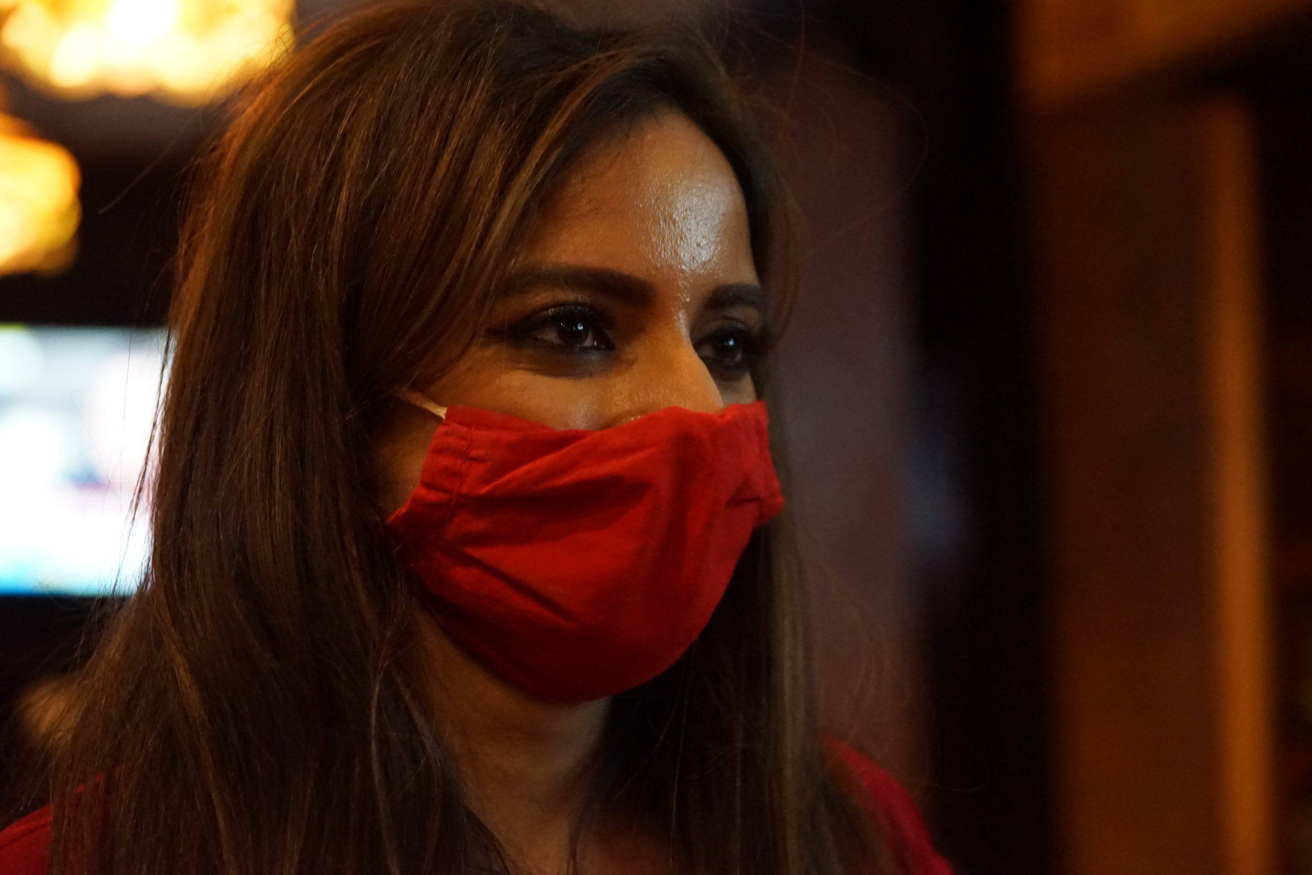 Rajkumar worked the bar, hugging people, joking around and taking photos by the brick wall with her volunteers. She had on a red face mask to match her sleeveless red dress. The fashion choice was a nod to someone who saw something in her candidacy, she said.