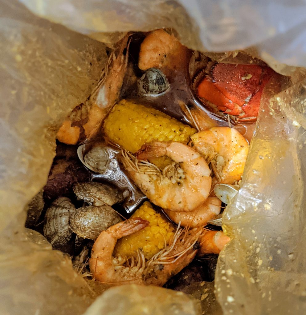 My mom and I shuffled back to the house, large and heavy brown paper bags in tow. We took our time dishing out the fried oysters, lemon pepper chicken wings, and sweet potato fries before digging into the massive triple-bagged boil bag that held mussels, clams, shrimps with beady little eyes, lobster tails, corn, and whole potatoes drenched in garlic butter spices. Let’s just say we discovered the signature bibs at the bottom of the bag way too late to advert the complete mess we made of ourselves while eating.