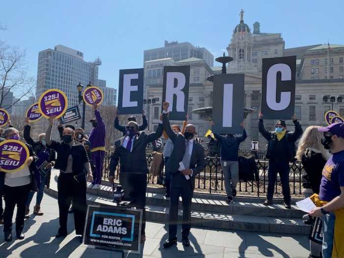And on this cold, currently, winter-like day in the end of April, which is probably more indicative of climate change than anything, Mayoral candidate and Brooklyn Borough President Eric Adams is releasing his plan for a leaner, greener New York City.
