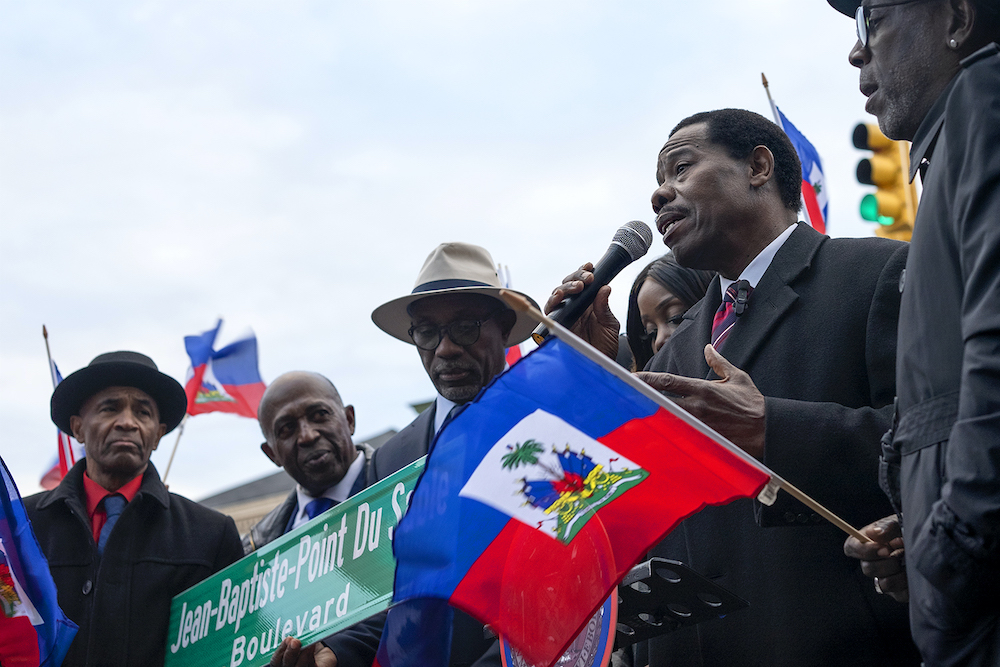 City Councilmembers Mathieu Eugene (D-Brooklyn) and Farah Louis (D-Brooklyn) celebrated the Haitian-American frontiersman, entrepreneur and founder of Chicago, yesterday. Nov. 14 with a street co-naming at the Clarendon Road/Flatbush Avenue intersection.