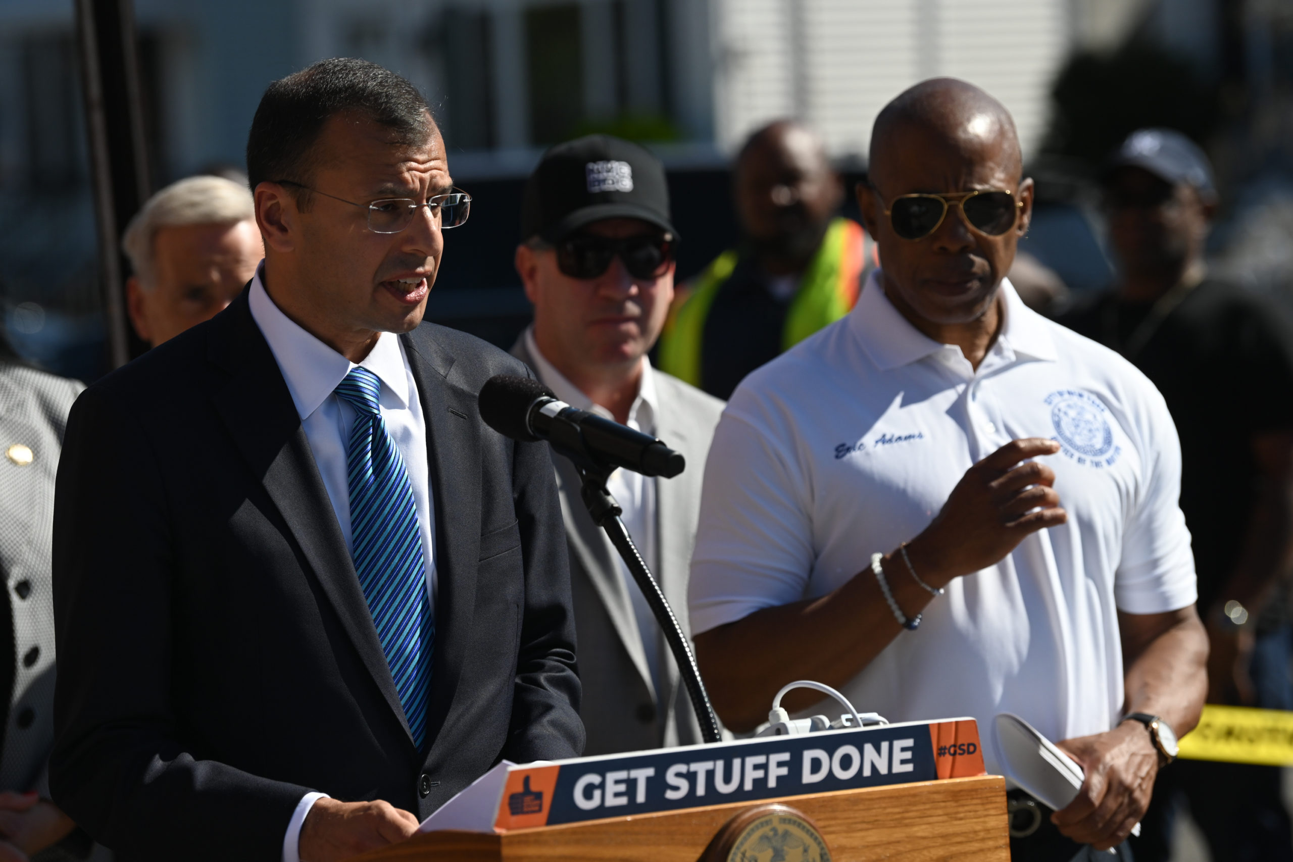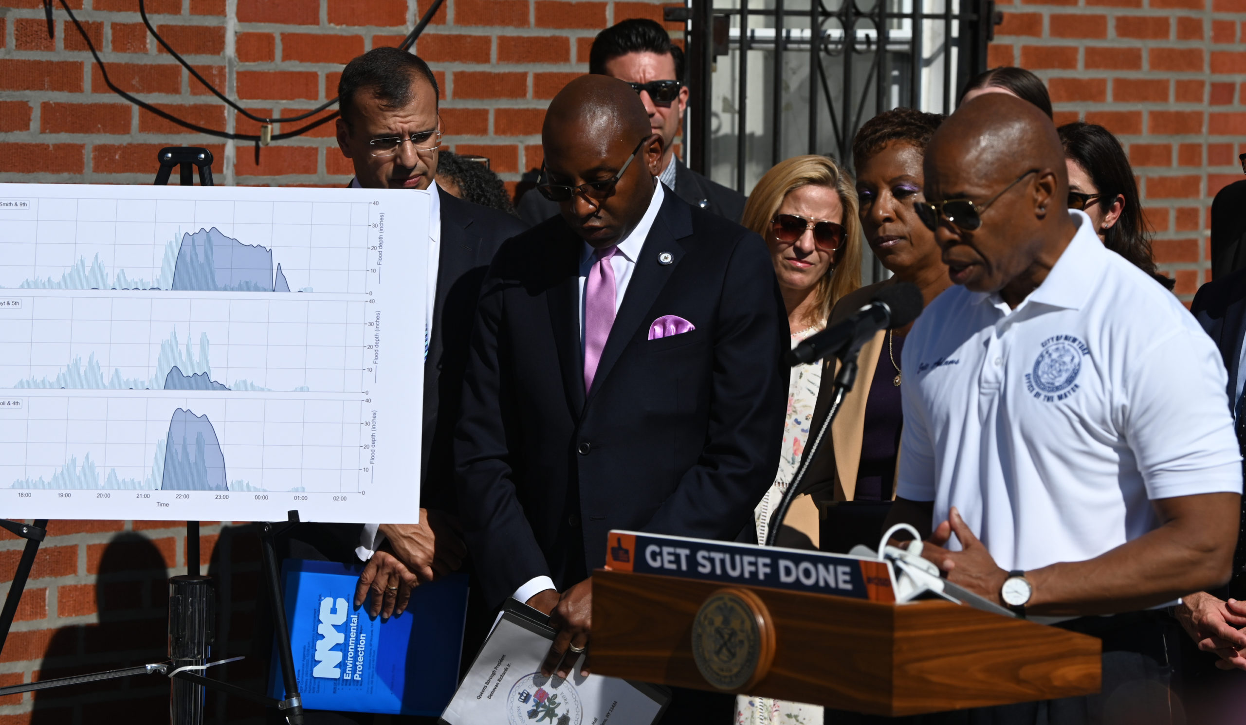 The mayor was accompanied by his Chief Climate Officer and city Department of Environmental Protection (DEP) Commissioner Rohit Aggarwala, Mayor’s Office of Climate and Environmental Justice (MOCEJ) Executive Director Kizzy Charles-Guzman, City Council Speaker Andrienne Adams and Queens Borough President Donovan Richards.