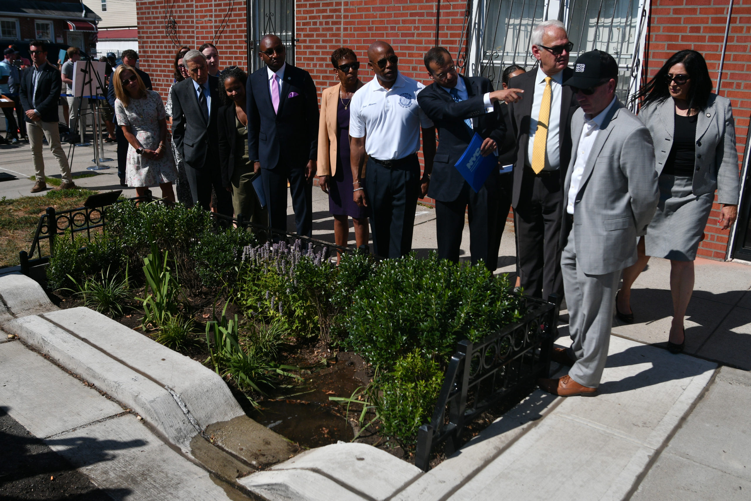 On the one-year anniversary of Hurricane Ida, Mayor Eric Adams Thursday announced the completed construction of 2,300 new curbside rain gardens to help with flood mitigation in Queens and the Bronx.